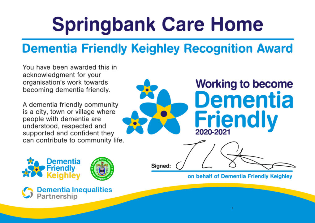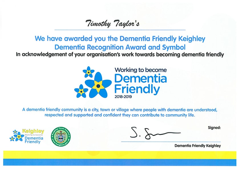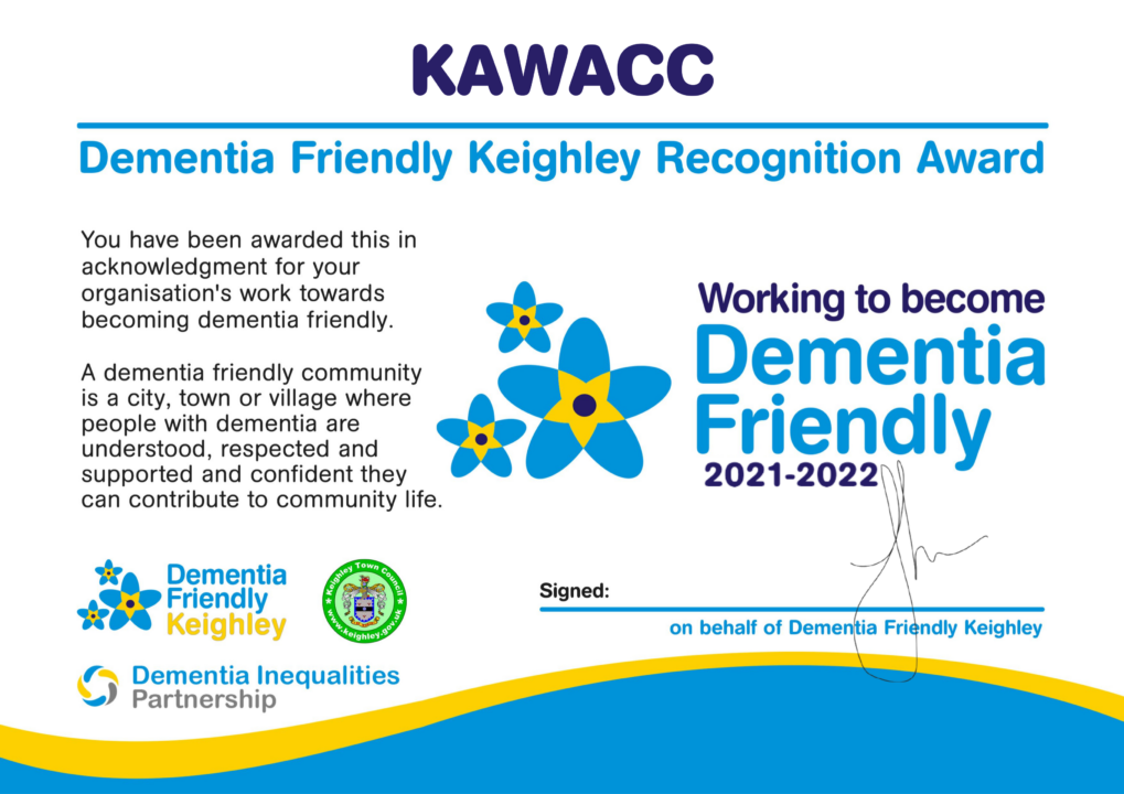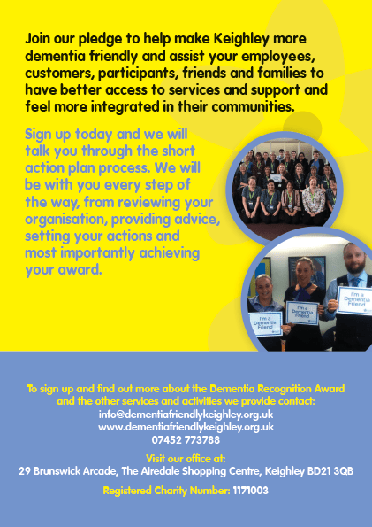 We believe that by engaging with and supporting more organisations to sign up to this initiative, we will be able to make Keighley a more dementia friendly place to live and work.